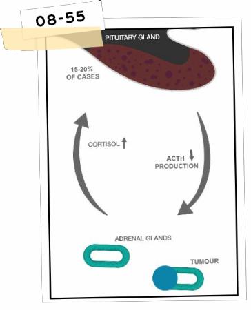 Cellene i denne svulsten produserer for store mengder ACTH som i sin tur fører til overdreven produksjon av kortisol.