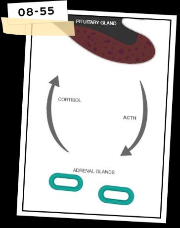 Som nevnt ovenfor ligger hypofysen nederst i hjernen og er ansvarlig for produksjonen av ACTH, som får binyrene til å produsere kortisol.